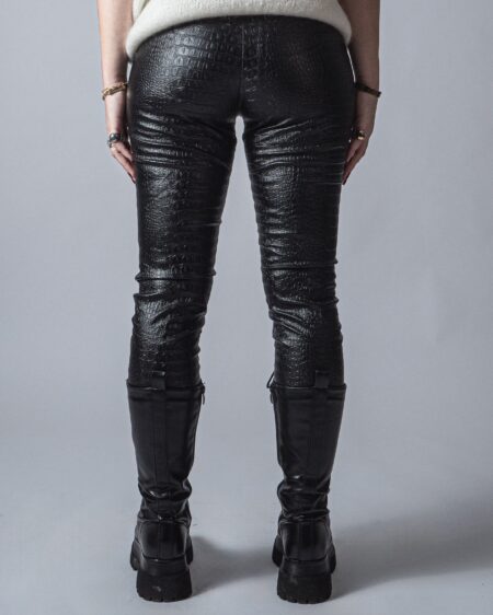 70,00 €Il prezzo originale era: 70,00 €.19,90 €Il prezzo attuale è: 19,90 €.Pantalone nero in pelle sintetica stampa cocco.Pantalone skinny e chiusura frontale con zip . COMPOSIZIONE: Face:100% Pu Leather Base:100% Poliestere