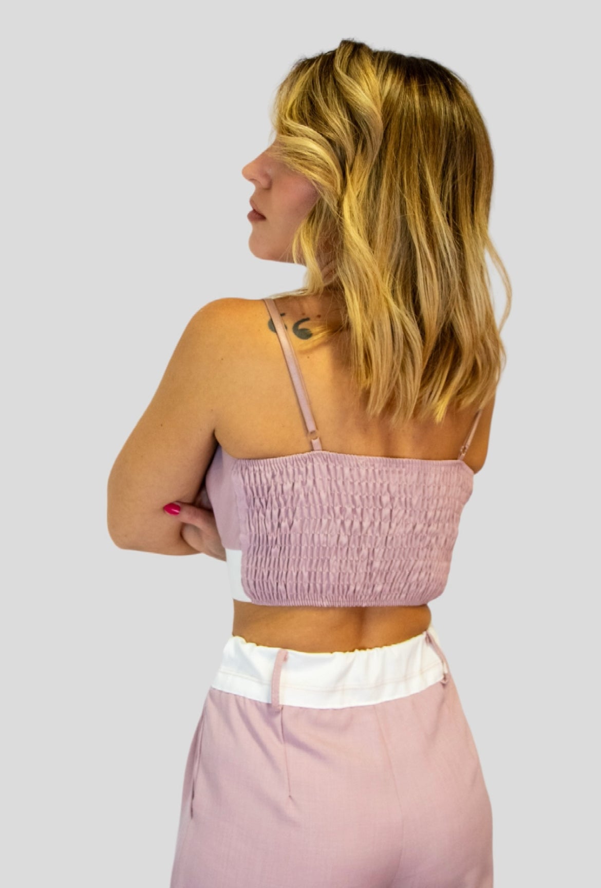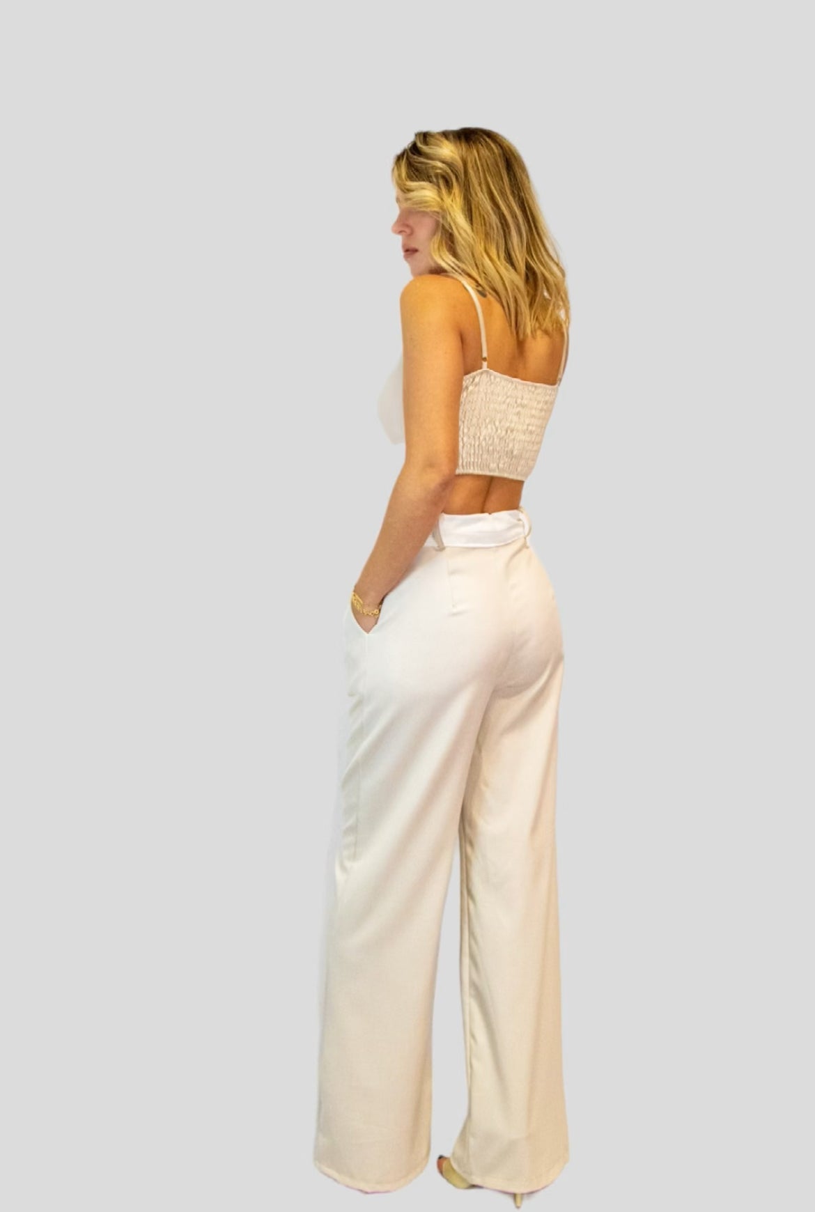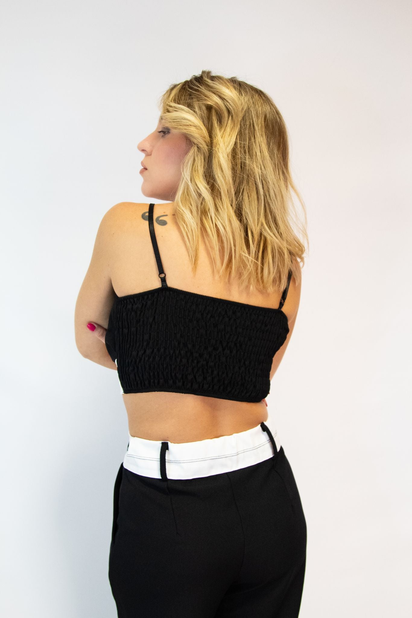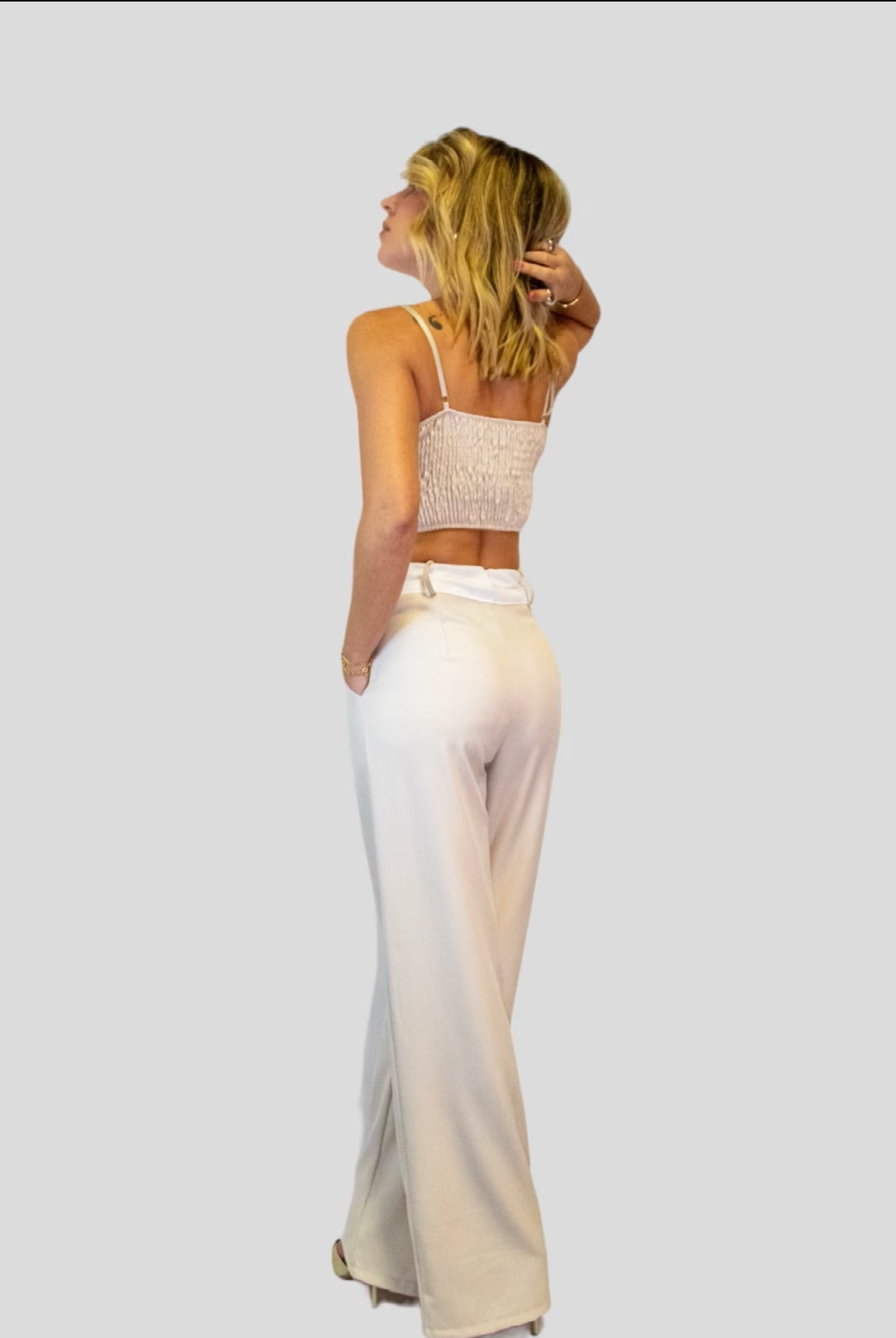 Coordinato composto da Pantaloni palazzo vita alta bicolore abbinati al suo top  con spalline regolabili.Il coordinato è versatile per diverse occasioni tra cui cerimonie,ufficio,aperitivi cene basta semplicemente giocare su scarpe e accessori.