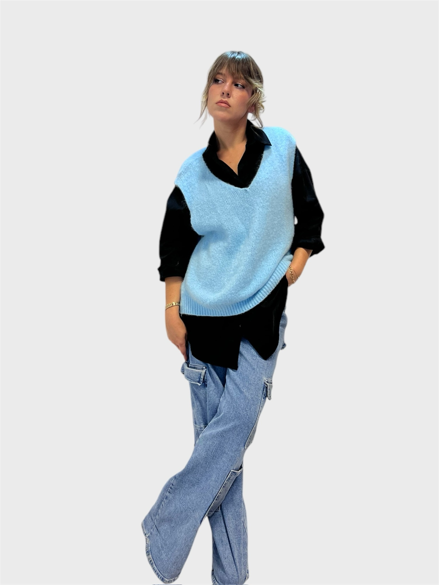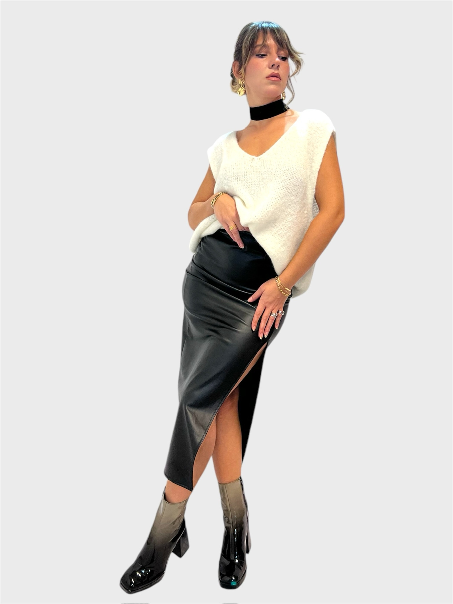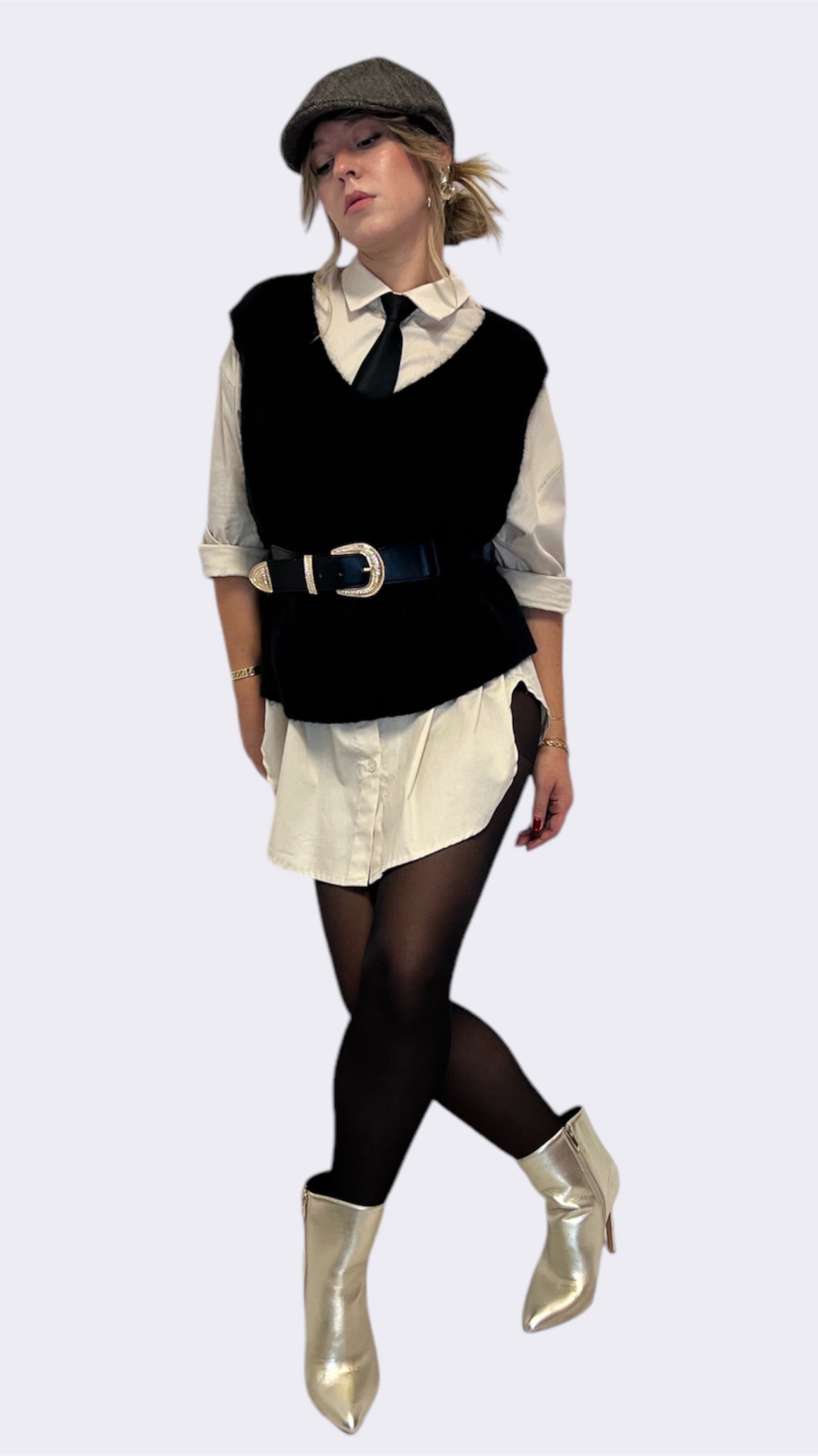 Cintura nera larga 4,5 cm realizzata in pelle sintetica. Dettaglio :borchie e fibbia metallica tonda,elasticizzata. Veste dalla Xs alla L. Taglia unica