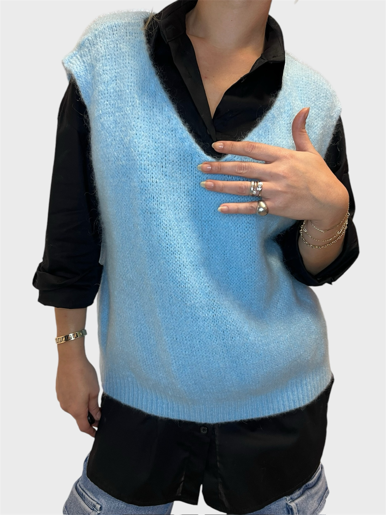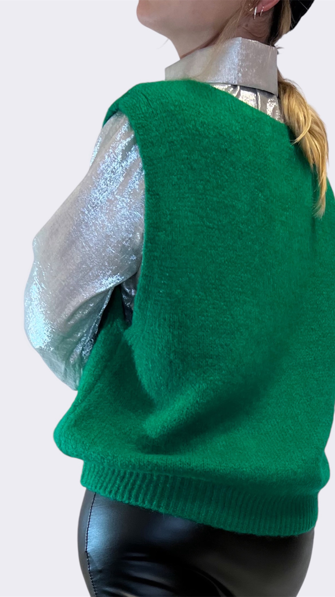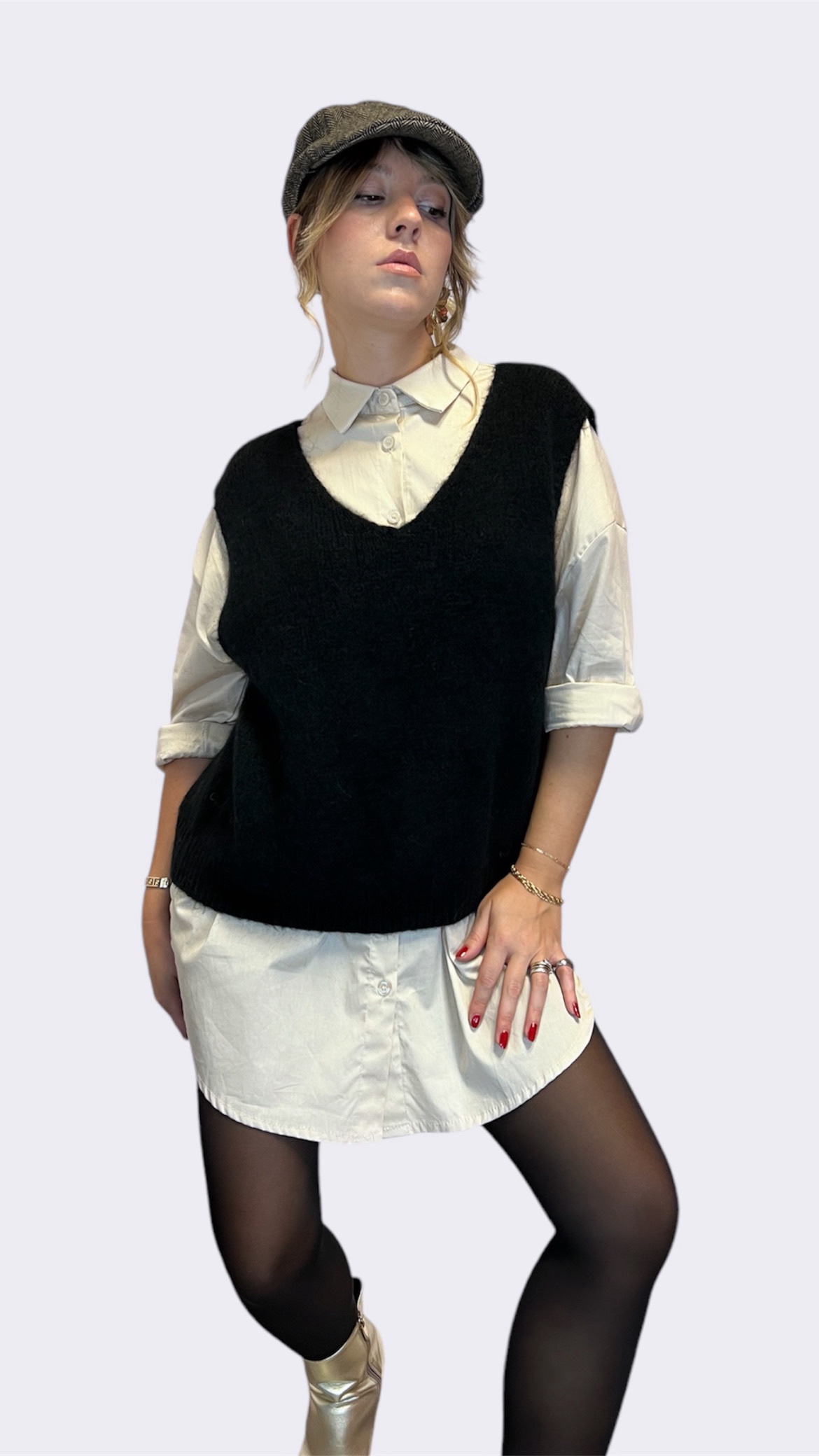 Cintura nera larga 4,5 cm realizzata in pelle sintetica. Dettaglio :borchie e fibbia metallica tonda,elasticizzata. Veste dalla Xs alla L. Taglia unica