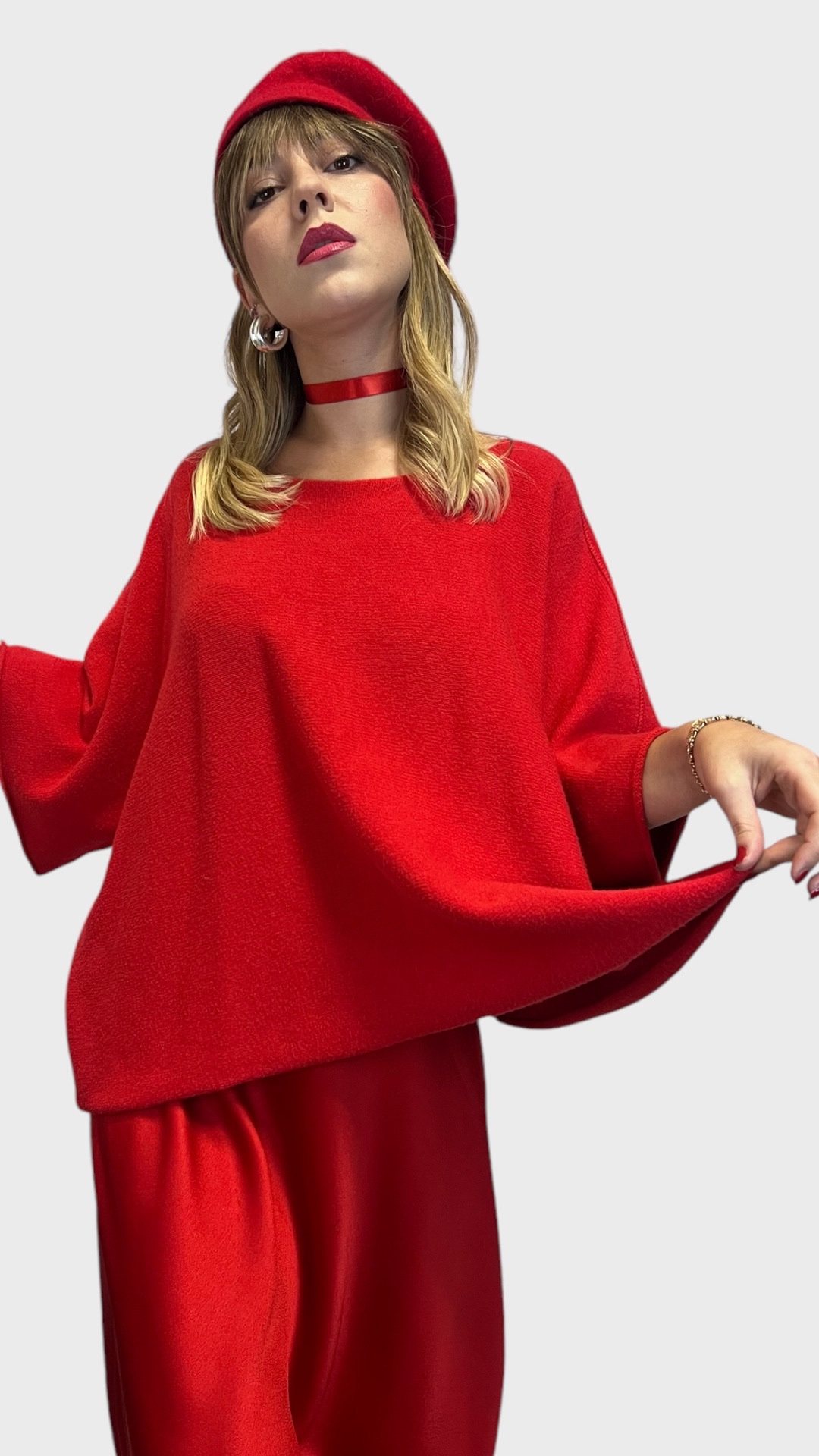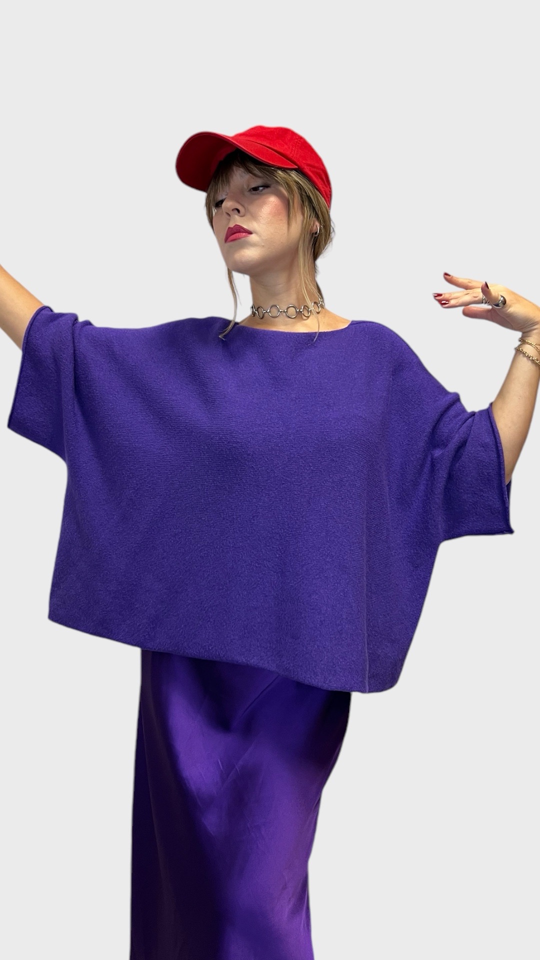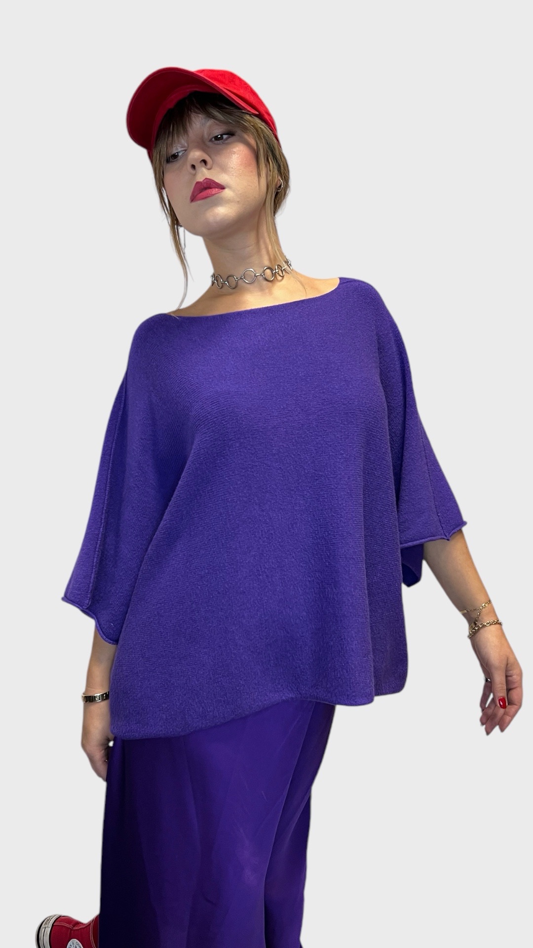 Maglia modello oversize morbida,calda e versatile.Manica a pipistrello.