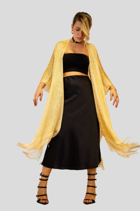 Cardigan oversize lungo con frange in lurex. Veste dalla Xs alla XL Taglia Unica COMPOSIZIONE: 100% Poliestere