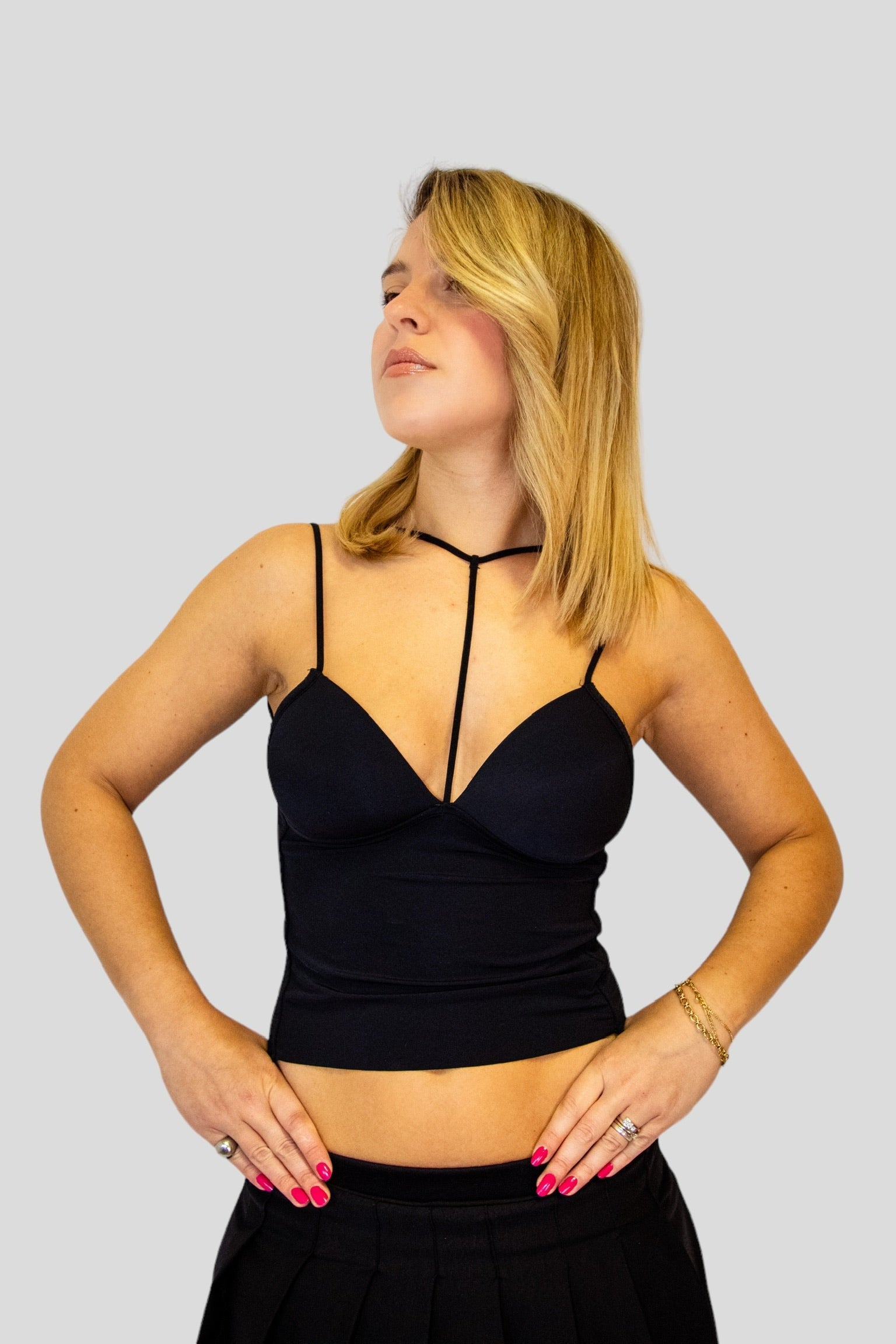 Top corto in lycra con coppe seno rinforzate e spalline elasticizzate.Modello sensuale e versatile.