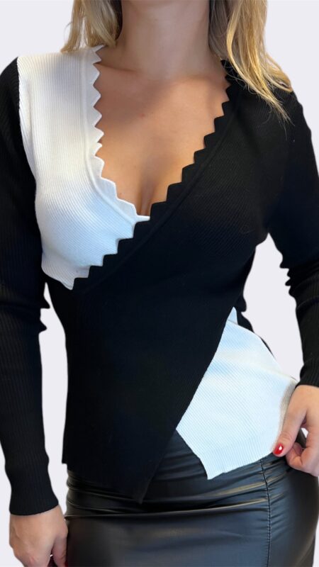 44,90 €Il prezzo originale era: 44,90 €.19,90 €Il prezzo attuale è: 19,90 €.Maglia bicolor con scollo a V profondo.È elasticizzata e molto morbida.